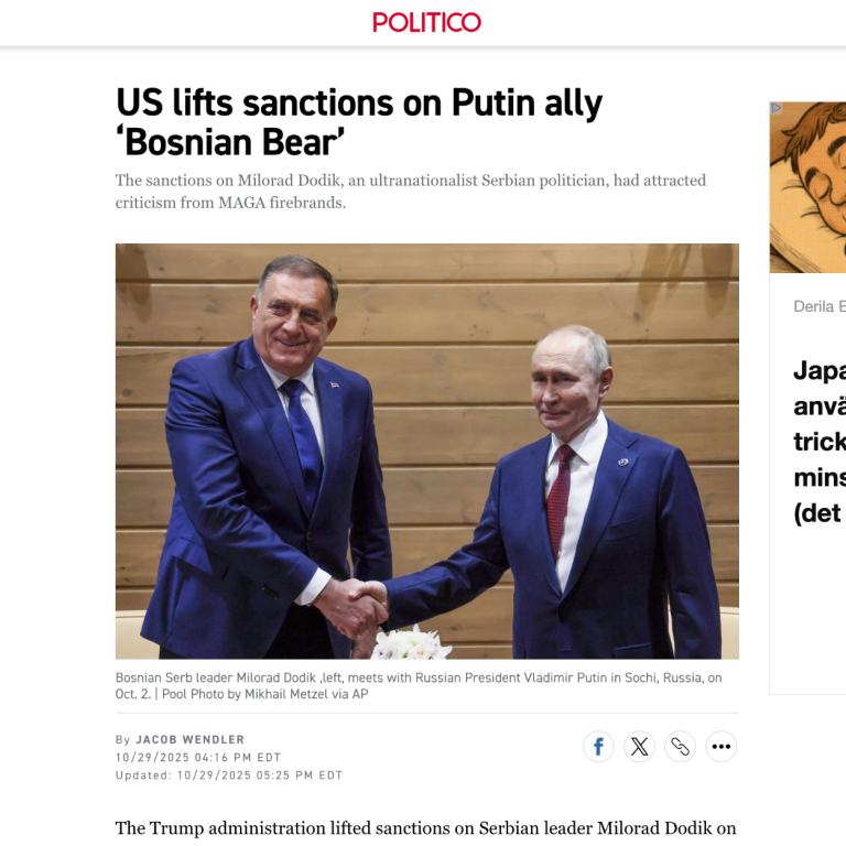 Politico од 29 октобра 2025 године