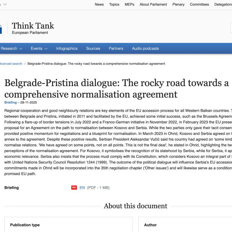 Поводом policy briefing документа који је објавио EPRS при European Parliament од 28 новембра 2025 године уочљив је карактеристичан пример такозваног бриселског институционалног језика који носи значајне имплицитне политичке и правне последице.