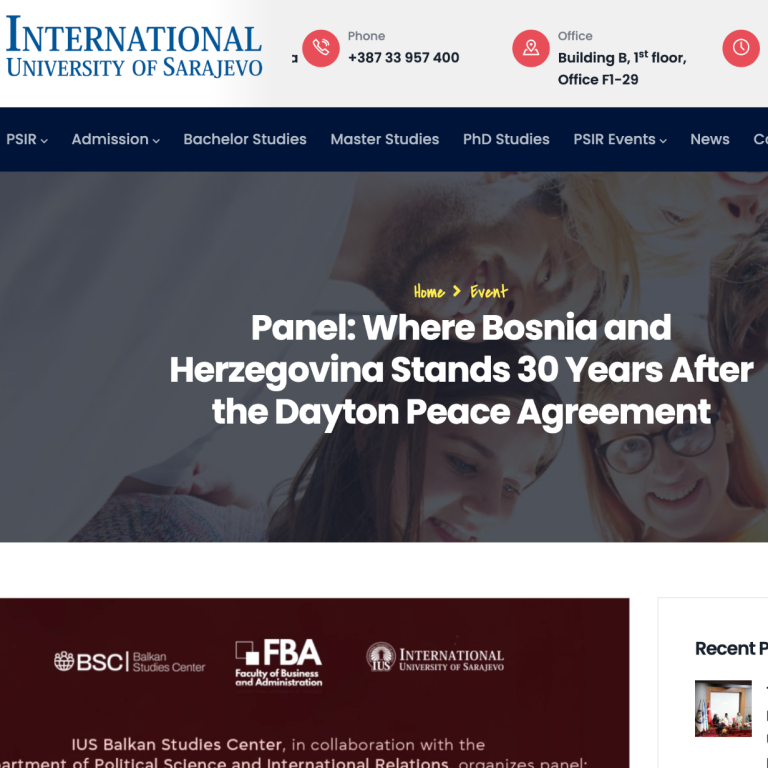 Поводом јавног панела организованог од стране International University of Sarajevo 4 децембра 2025 године под насловом који се односи на тридесет година након Дејтонског споразума уочљив је образац који се често понавља у академским и јавним догађајима о Босни и Херцеговини а који се тиче репрезентативне и програмске равнотеже.